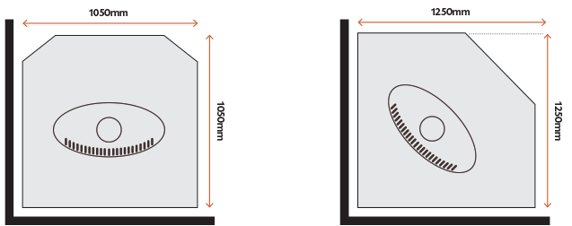 Straight 1050mm x 1050mm or Corner 1250mm x 1250mm